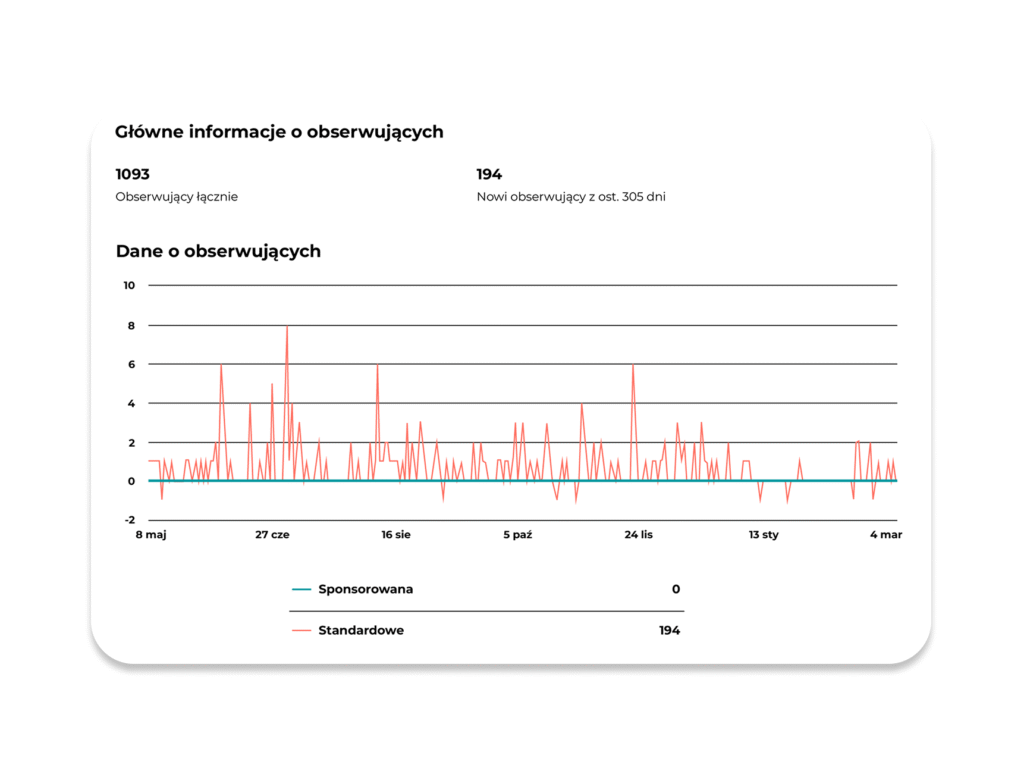 Wzrost liczby obserwujących na LinkedIn o 194 osoby od początku współpracy (+70% wobec analogicznego, poprzedniego okresu).